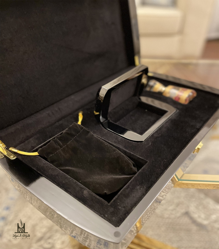 طقم إهداء فاخر باللون الأسود، يحتوي على كرستالة تَسع ربع تولة من الأدهان التي تناسبكم من وسم (الأدهان)، بالإضافة إلى بخور من اختياركم من وسم (بخور علب الإهداء)، وكيس قماشي حُرّ بإمكانكم استعماله بالبخور أو بإضافة أي منتج آخر ترغبون به ..